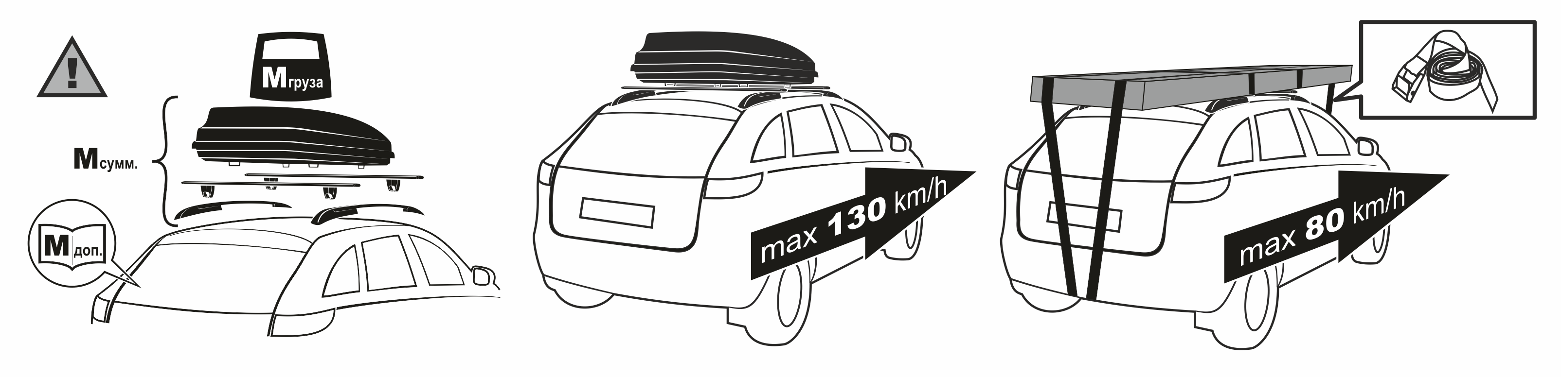 масса перевозимого груза-определяется расчётным способом: максимальная масса перевозимого груза равна разности допустимой нагрузки на крышу, указанной в руководстве по эксплуатации автомобиля, и суммарной массы всех вспомогательных устройств, установленных на крыше автомобиля (рейлингов, багажников, боксов, креплений для велосипедов, лыж, сноубордов и прочего).